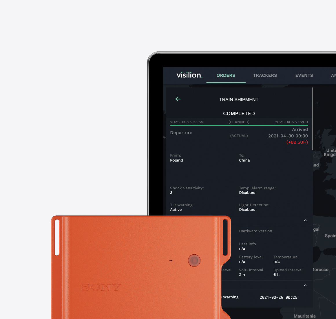 Dołącz urządzenie (tracker) do przesyłki (do kontenera lub bezpośrednio do paczki) i otrzymuj precyzyjną informację